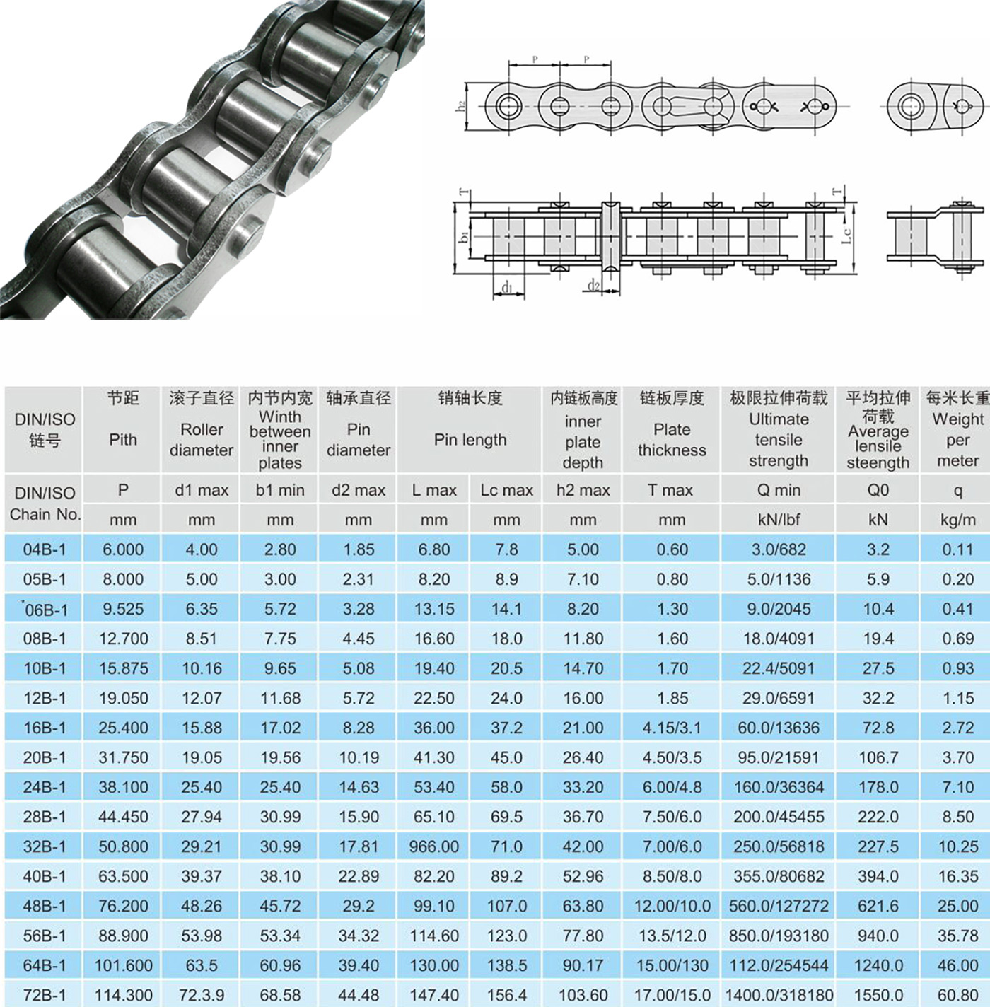 Přesné válečkové řetězy s krátkou roztečí (řada B)