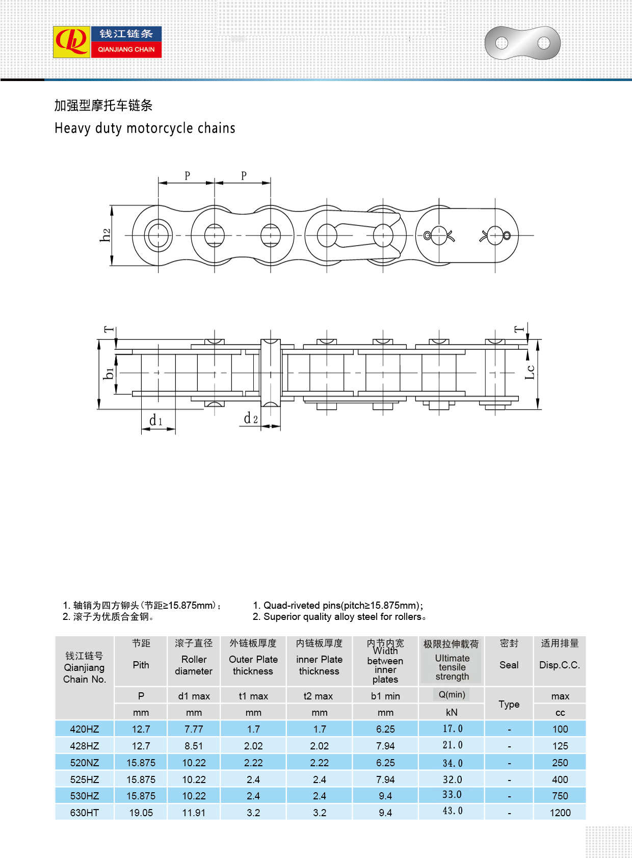 Vysoce kvalitní silné motocyklové řetězy z legované oceli pro těžký provoz – navržené pro bezkonkurenční výkon a spolehlivost. Tyto řetězy jsou vyrobeny z prvotřídní legované oceli a jsou vyrobeny tak, aby vydržely podmínky, nabízejí pevnost, odolnost proti opotřebení a dlouhou životnost.