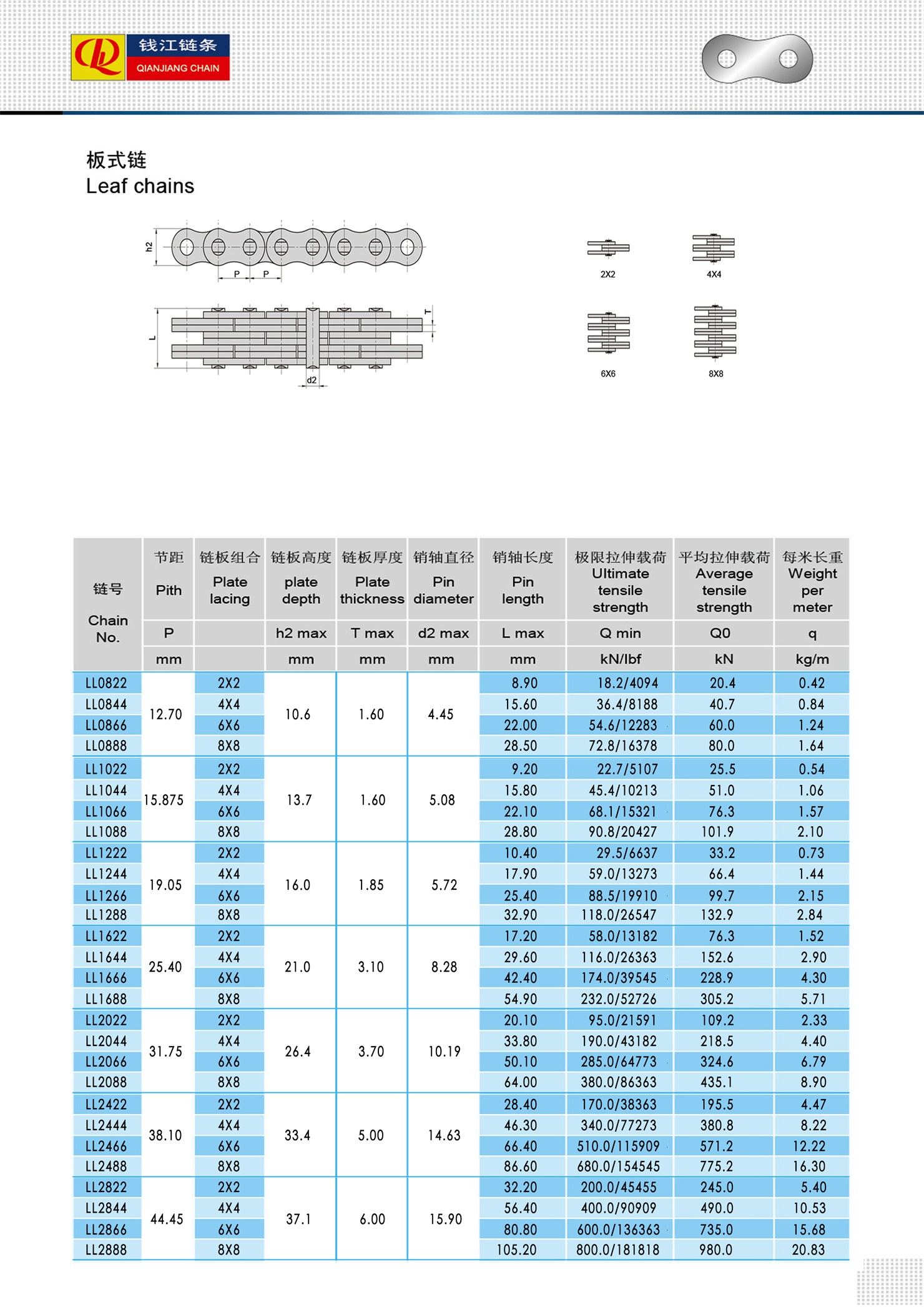 (Řada LL) Listové řetězy s nízkou údržbou a vysokou stabilitou